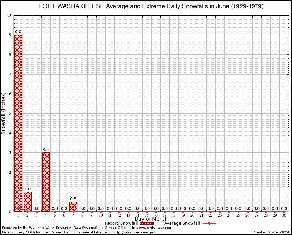 June Average and Extreme Daily Snowfall AMounts (1929-1979)