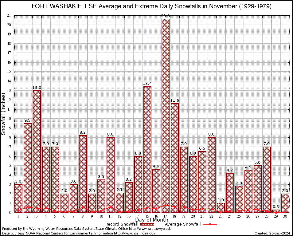 November Average and Extreme Daily Snowfall AMounts (1929-1979)