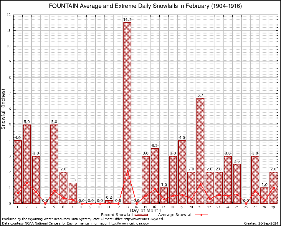 FOUNTAIN (483595) February Average and Extreme Daily Snowfall AMounts (1904-1916) To index page for FOUNTAIN