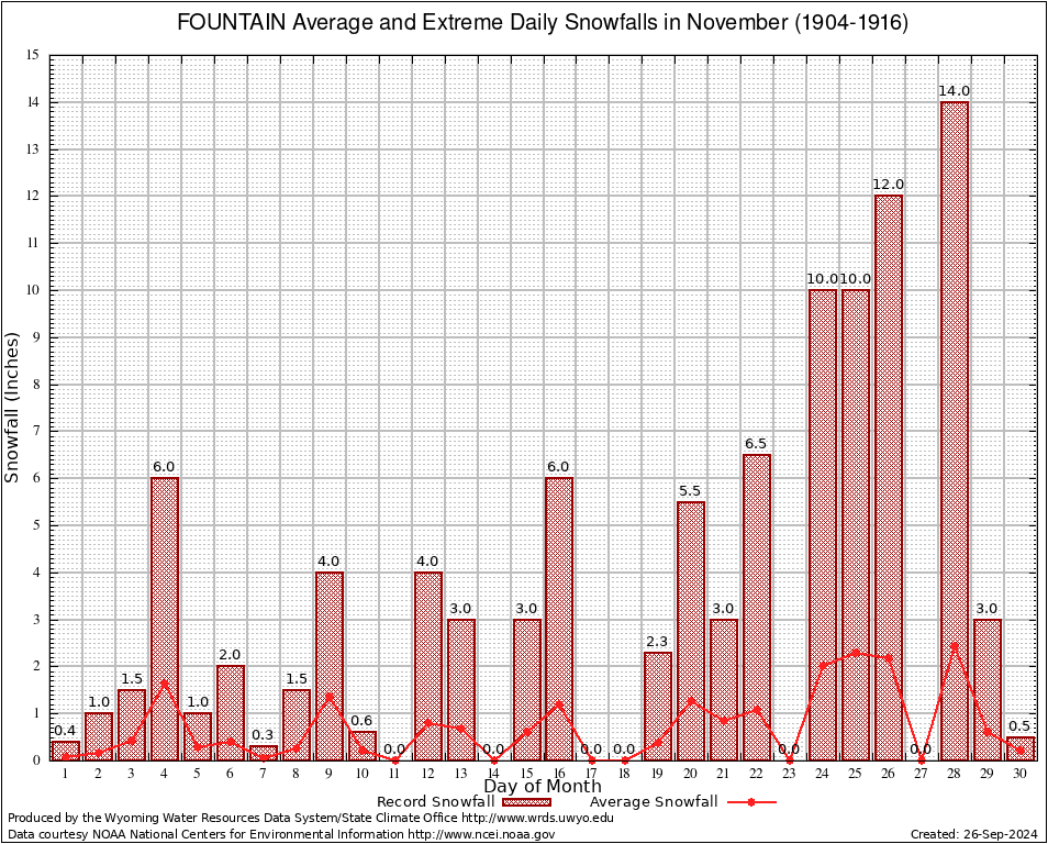 FOUNTAIN (483595) November Average and Extreme Daily Snowfall AMounts (1904-1916) To index page for FOUNTAIN