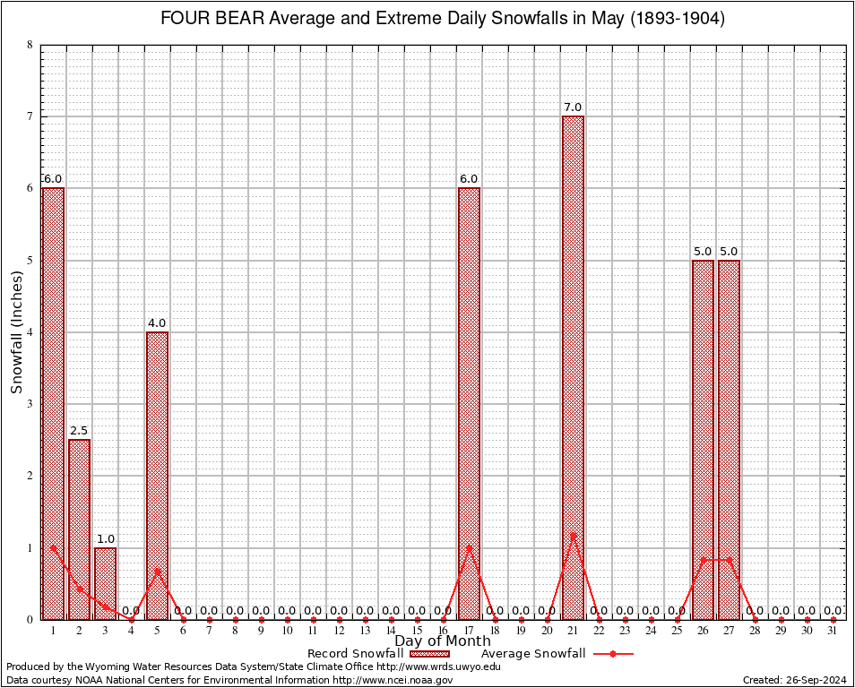 May Average and Extreme Daily Snowfall AMounts (1893-1904)