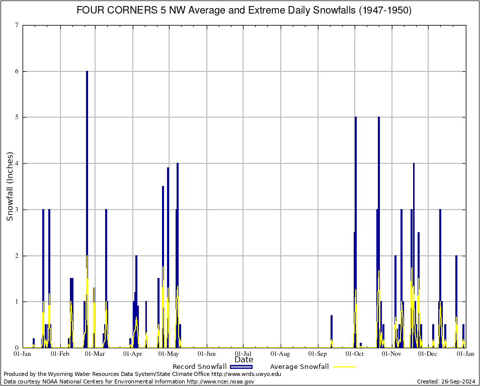 Annual Average and Extreme Daily Snowfall AMounts (1947-1950)