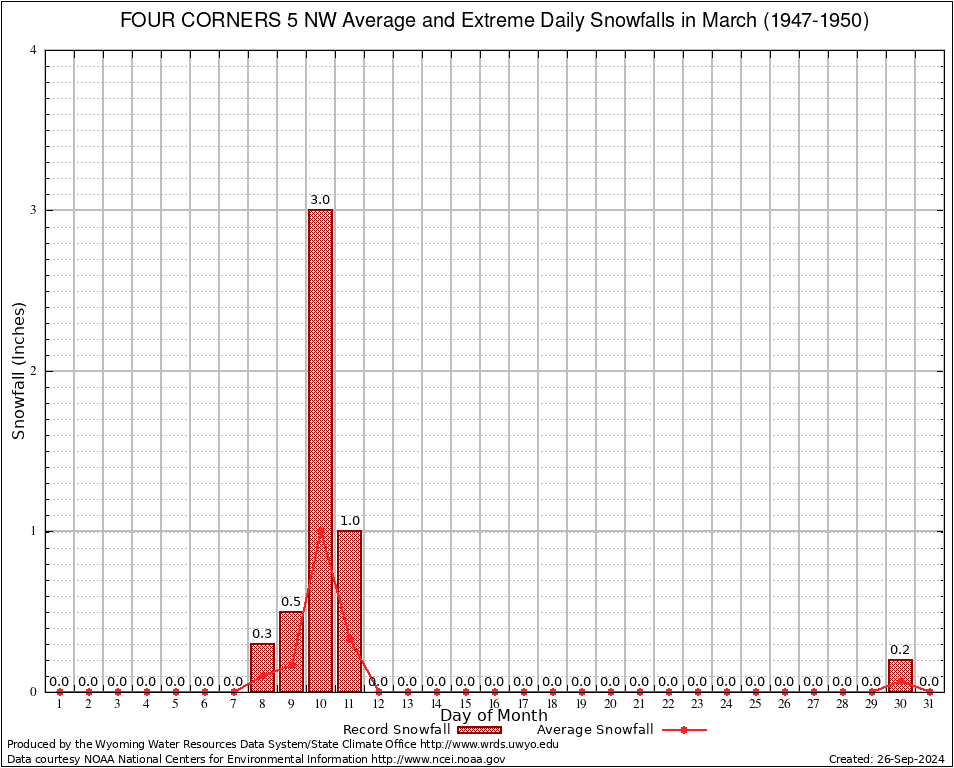 March Average and Extreme Daily Snowfall AMounts (1947-1950)