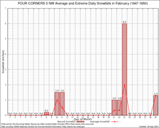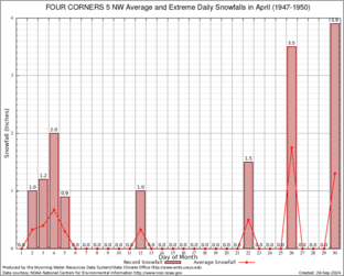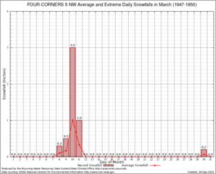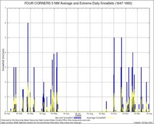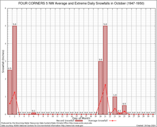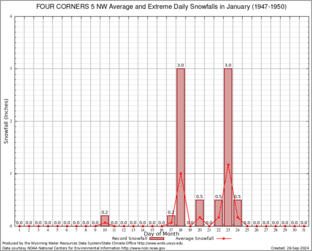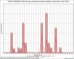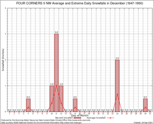 FOUR CORNERS 5 NW (483614) Record Extreme and Average Daily Snowfall (1947-1950) See Here for Other Stations