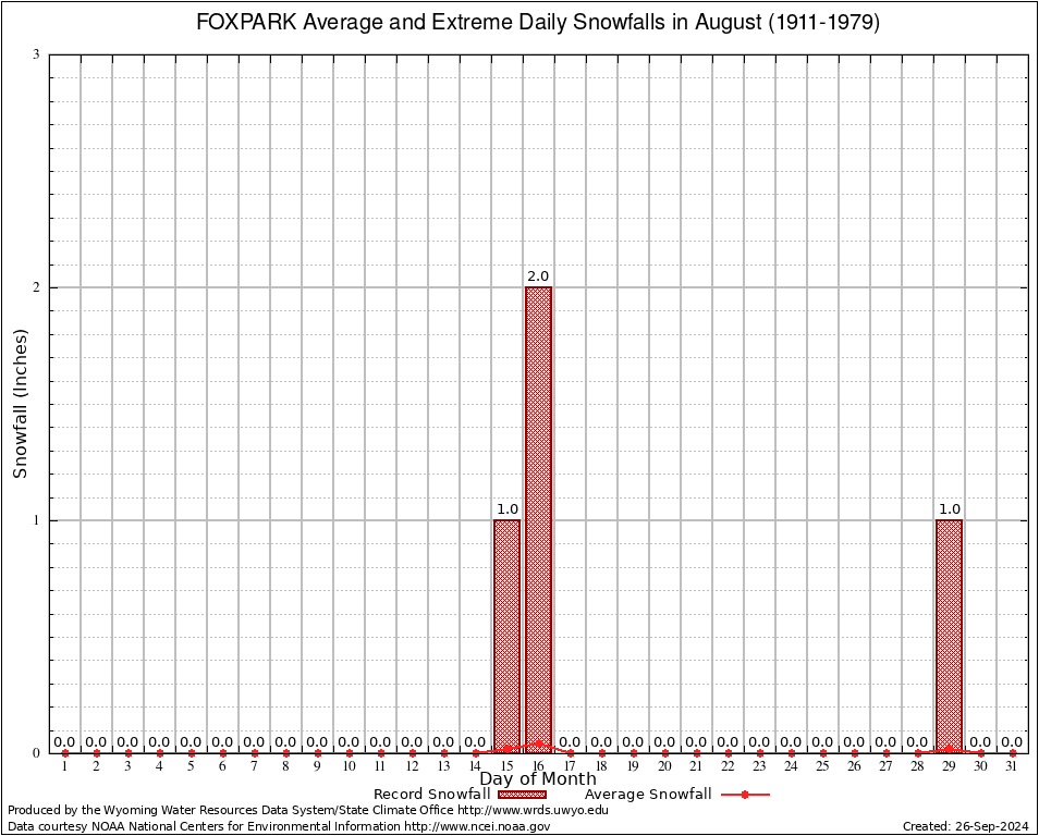FOXPARK (483630) August Average and Extreme Daily Snowfall AMounts (1911-1979) To index page for FOXPARK