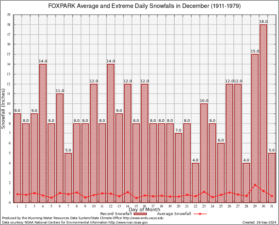 FOXPARK (483630) December Average and Extreme Daily Snowfall AMounts (1911-1979) To index page for FOXPARK