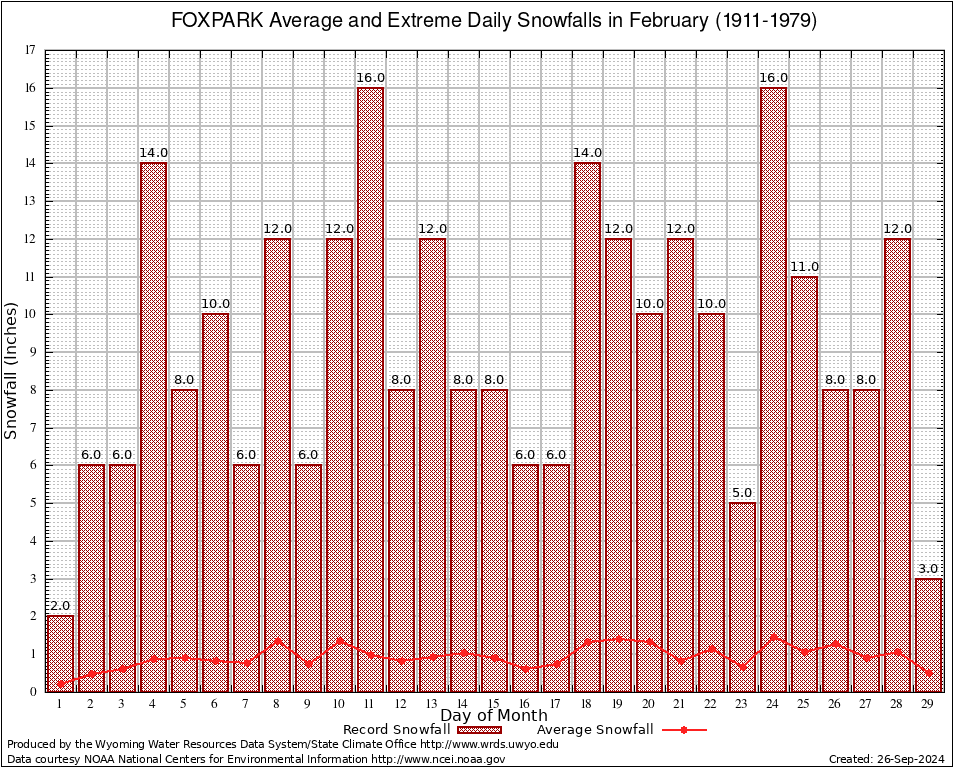 FOXPARK (483630) February Average and Extreme Daily Snowfall AMounts (1911-1979) To index page for FOXPARK