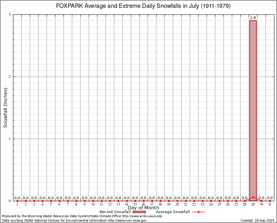 FOXPARK (483630) July Average and Extreme Daily Snowfall AMounts (1911-1979) To index page for FOXPARK