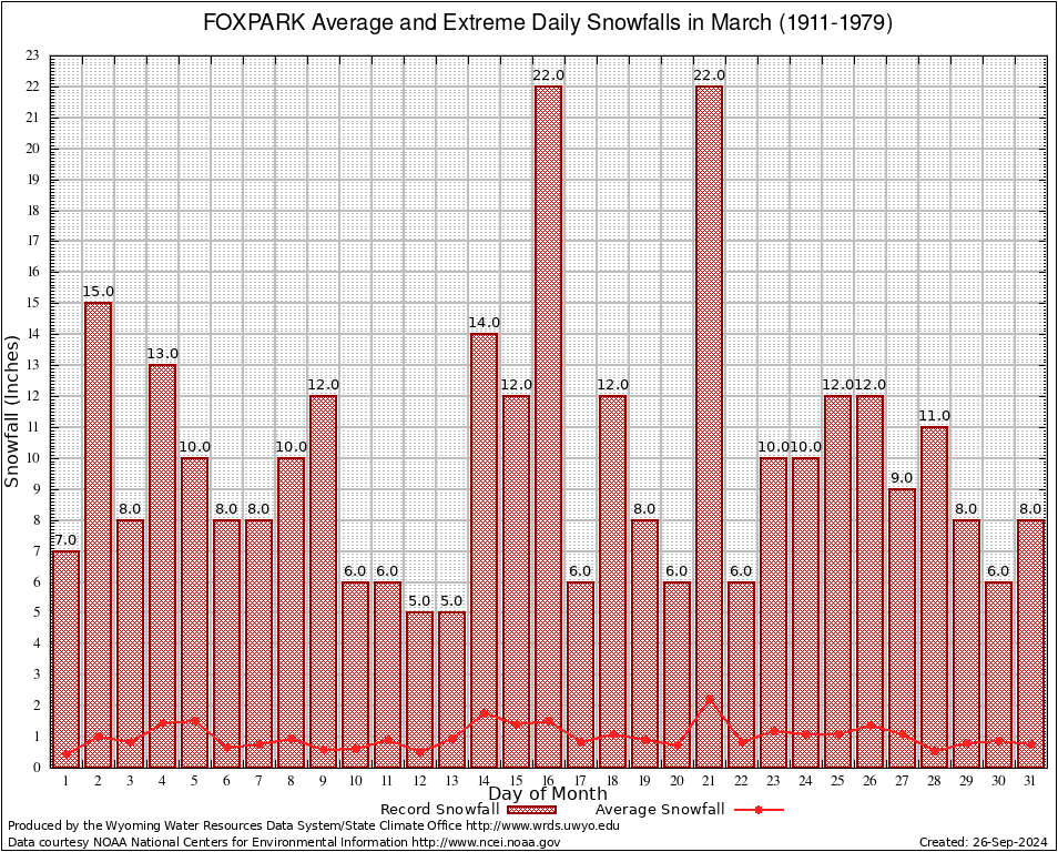 FOXPARK (483630) March Average and Extreme Daily Snowfall AMounts (1911-1979) To index page for FOXPARK