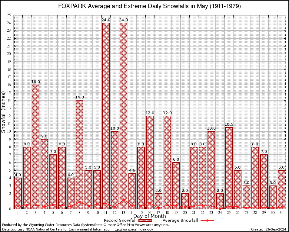FOXPARK (483630) May Average and Extreme Daily Snowfall AMounts (1911-1979) To index page for FOXPARK