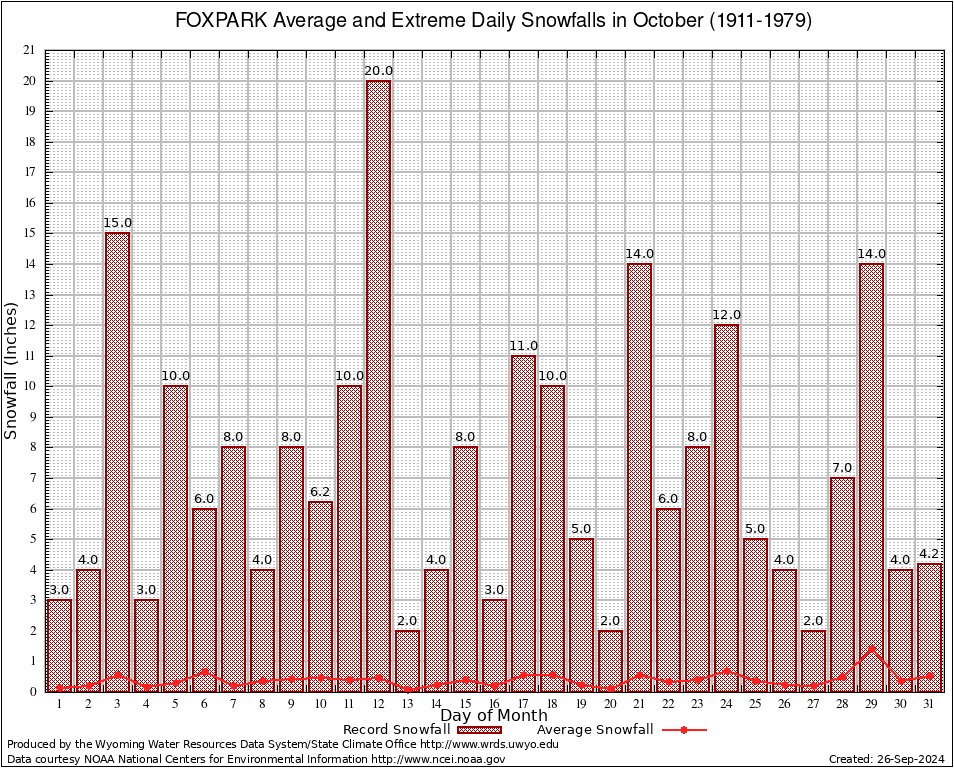 FOXPARK (483630) October Average and Extreme Daily Snowfall AMounts (1911-1979) To index page for FOXPARK