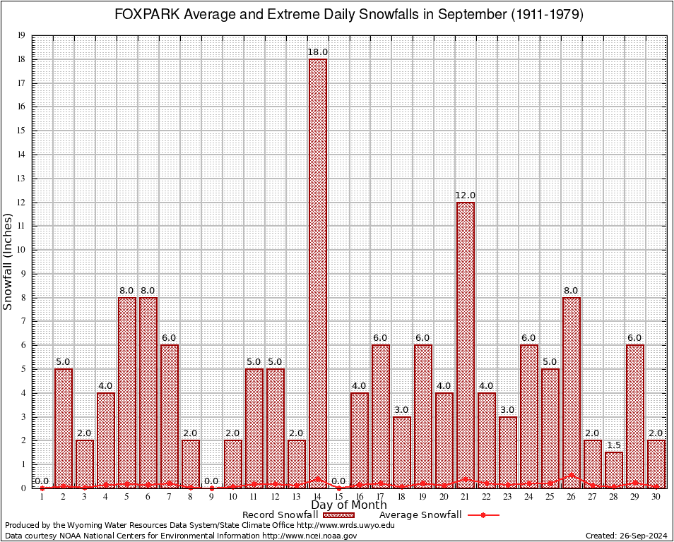 FOXPARK (483630) September Average and Extreme Daily Snowfall AMounts (1911-1979) To index page for FOXPARK