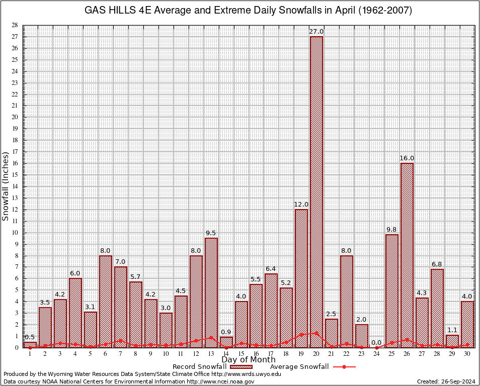 April Average and Extreme Daily Snowfall AMounts (1962-2007)