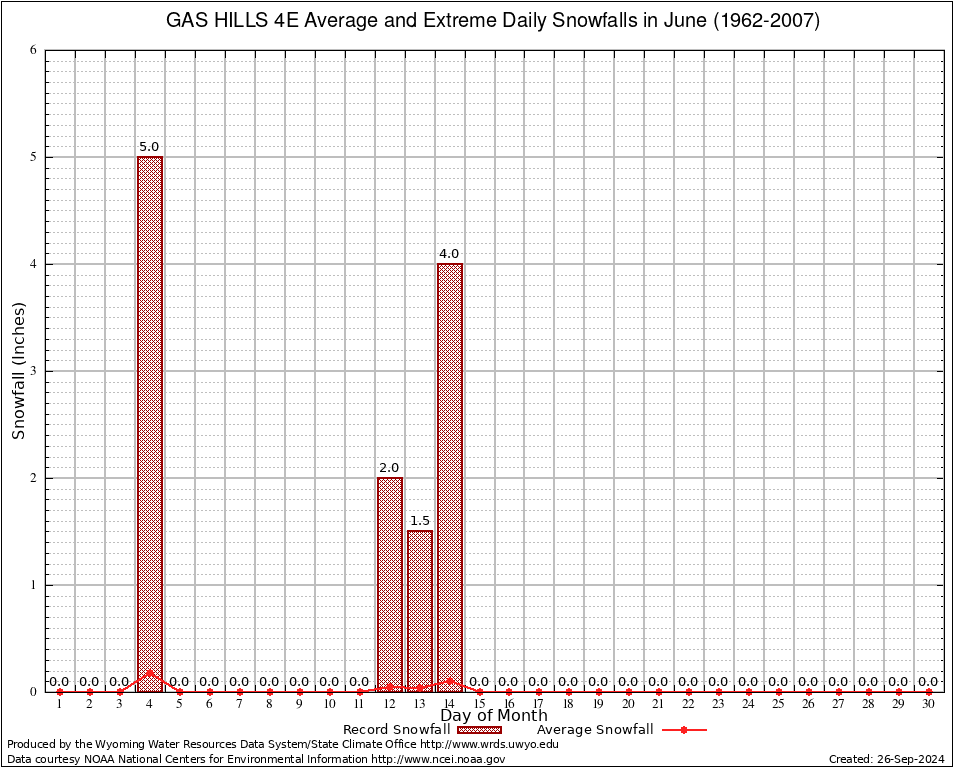 June Average and Extreme Daily Snowfall AMounts (1962-2007)