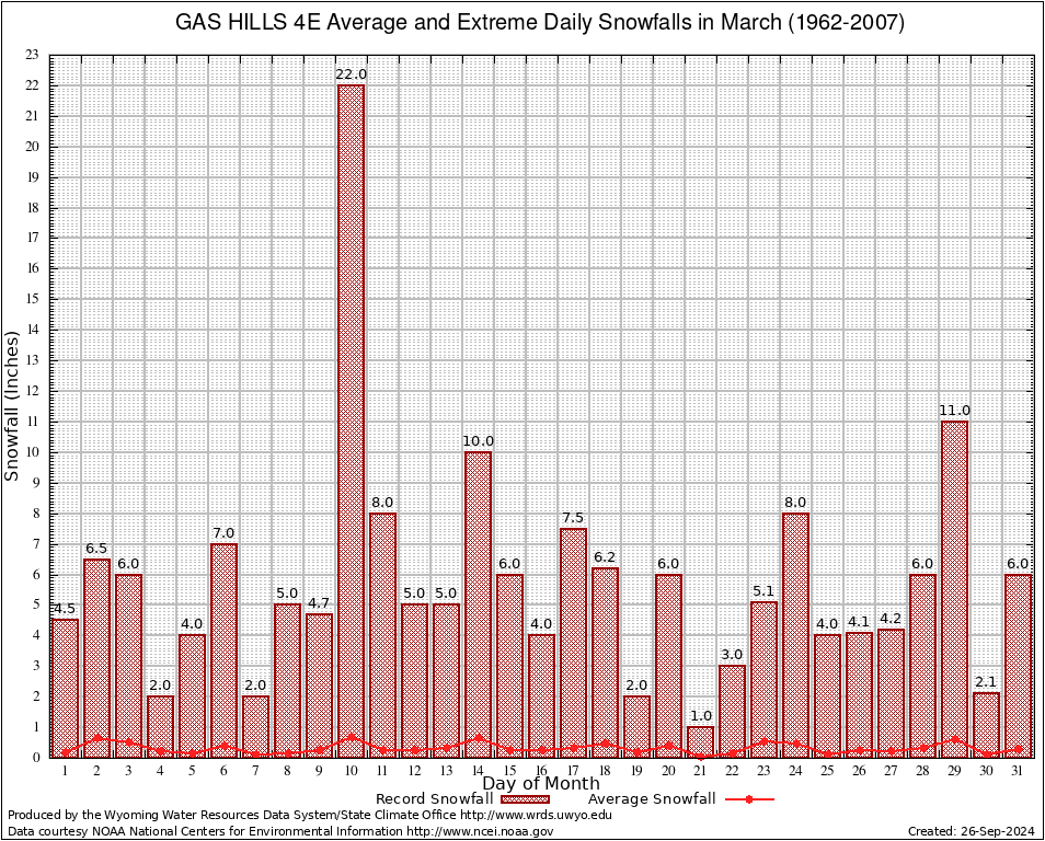 March Average and Extreme Daily Snowfall AMounts (1962-2007)