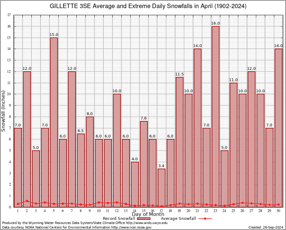 April Average and Extreme Daily Snowfall AMounts (1902-2024)