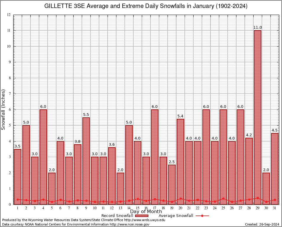January Average and Extreme Daily Snowfall AMounts (1902-2024)