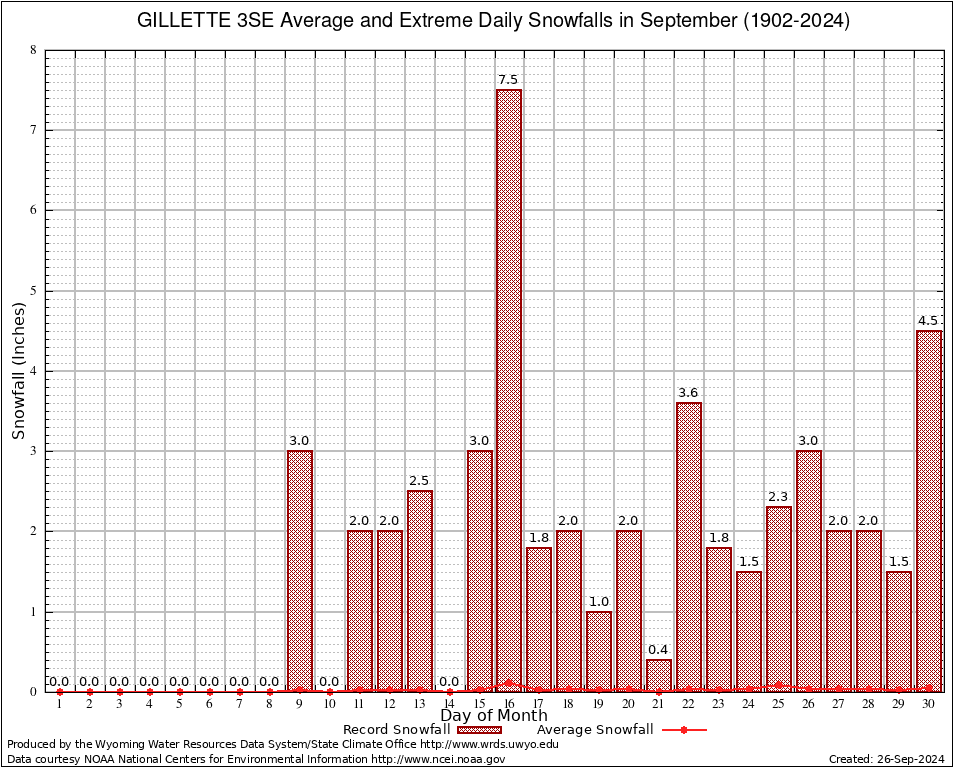 September Average and Extreme Daily Snowfall AMounts (1902-2024)