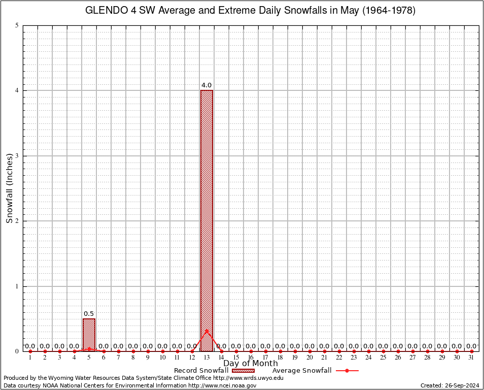 May Average and Extreme Daily Snowfall AMounts (1964-1978)