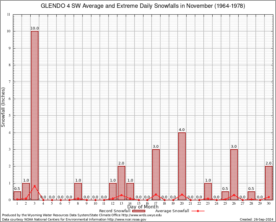 November Average and Extreme Daily Snowfall AMounts (1964-1978)