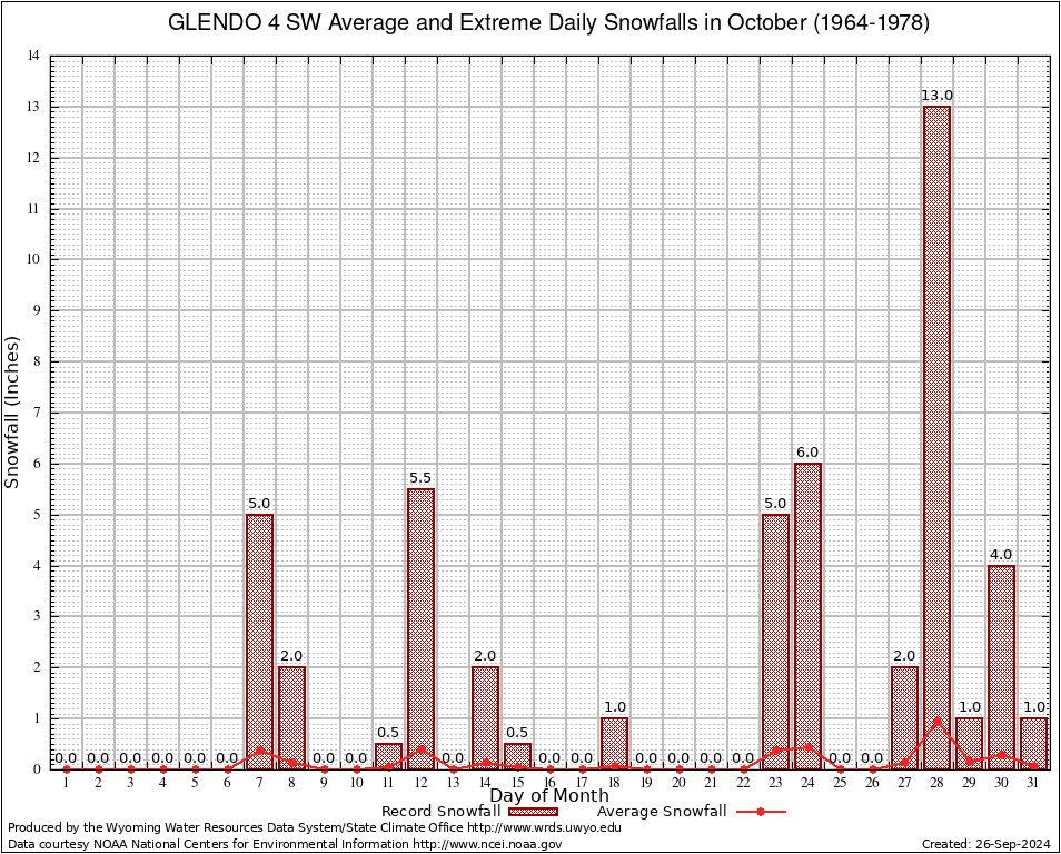 October Average and Extreme Daily Snowfall AMounts (1964-1978)