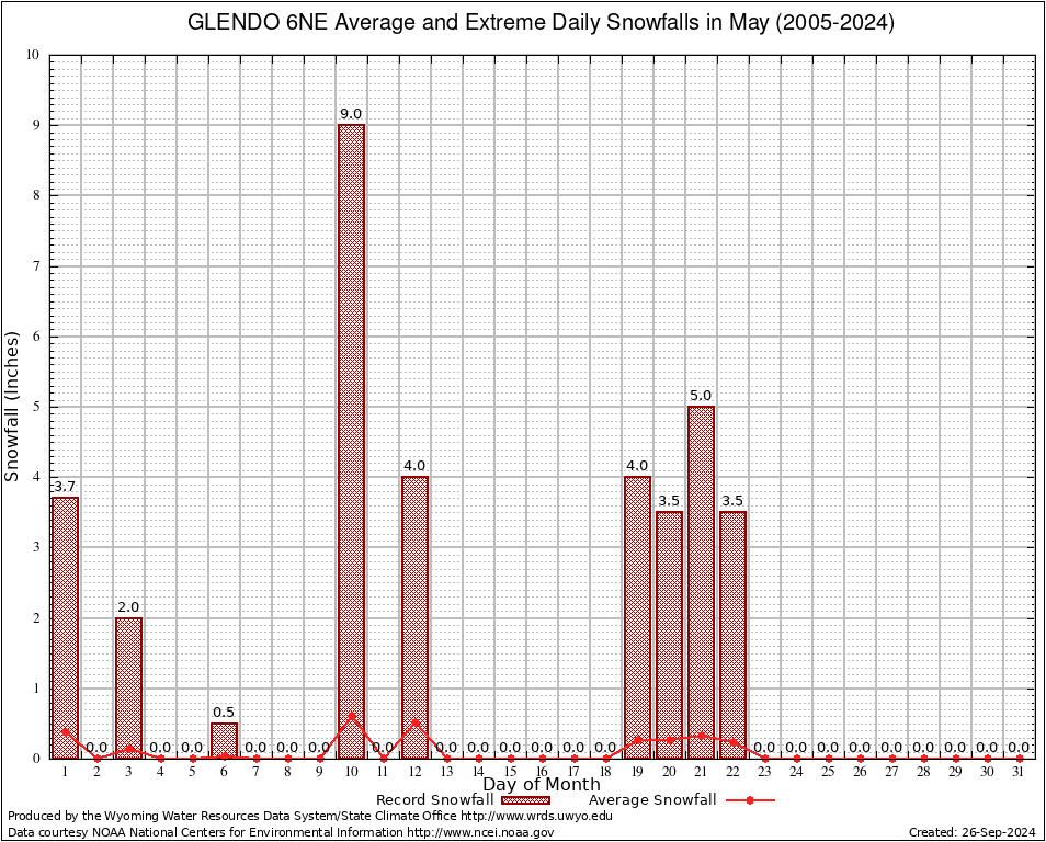 May Average and Extreme Daily Snowfall AMounts (2005-2024)