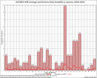Record Extreme and Average Daily Snowfall (2005-2024)