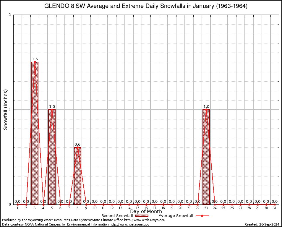 January Average and Extreme Daily Snowfall AMounts (1963-1964)