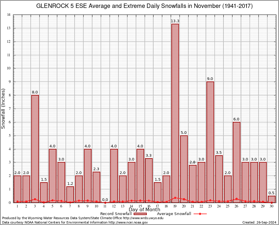 November Average and Extreme Daily Snowfall AMounts (1941-2017)