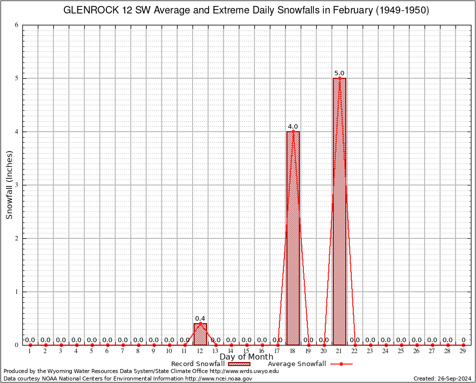 February Average and Extreme Daily Snowfall AMounts (1949-1950)