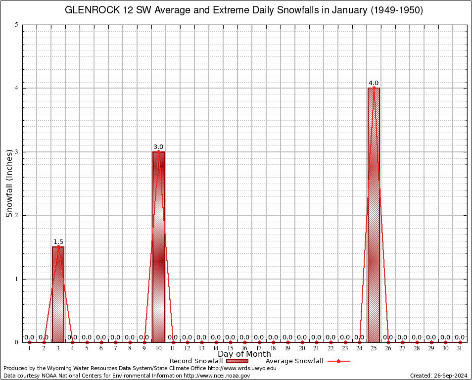 January Average and Extreme Daily Snowfall AMounts (1949-1950)