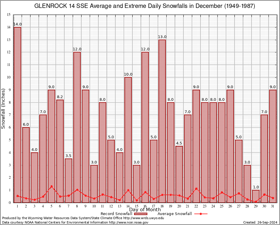 December Average and Extreme Daily Snowfall AMounts (1949-1987)