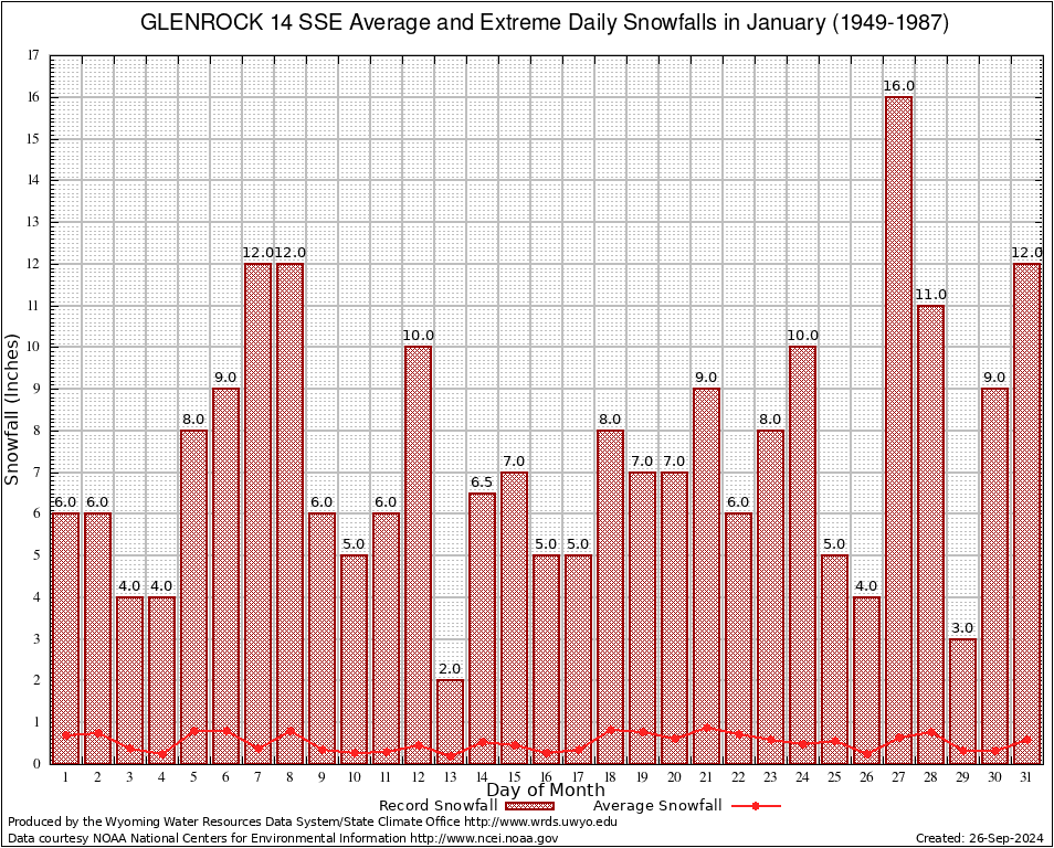 January Average and Extreme Daily Snowfall AMounts (1949-1987)
