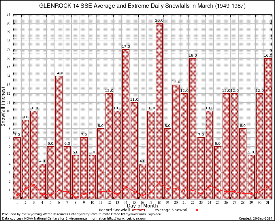 March Average and Extreme Daily Snowfall AMounts (1949-1987)