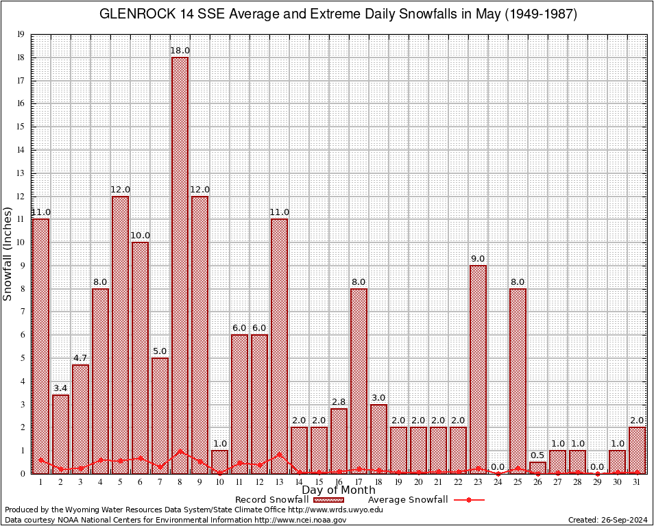 May Average and Extreme Daily Snowfall AMounts (1949-1987)