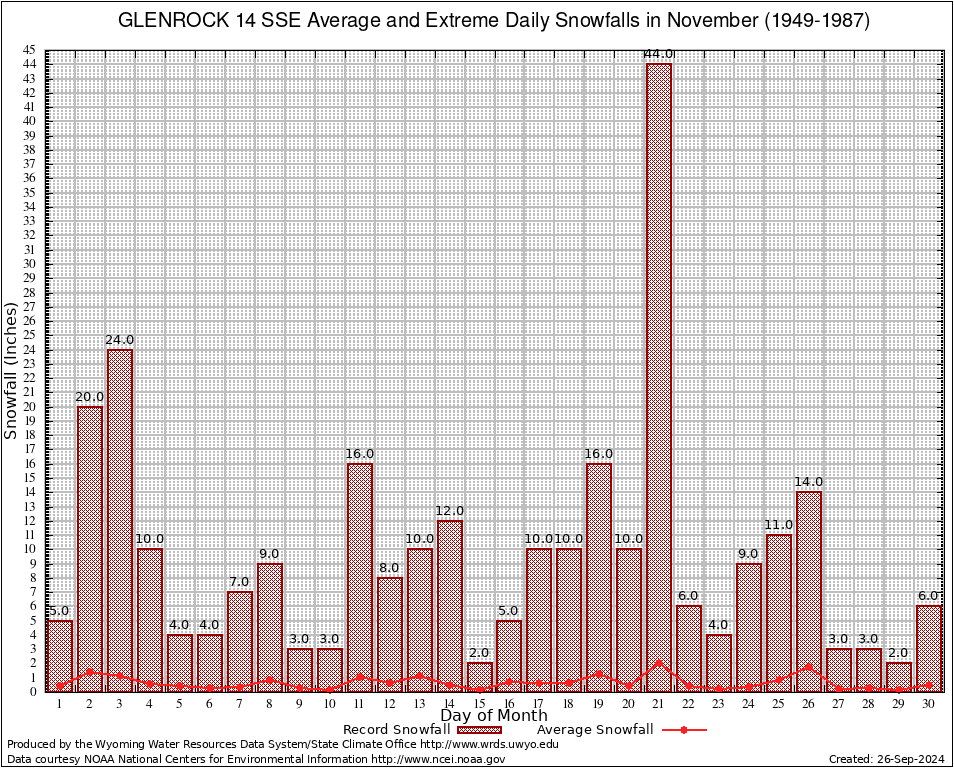 November Average and Extreme Daily Snowfall AMounts (1949-1987)