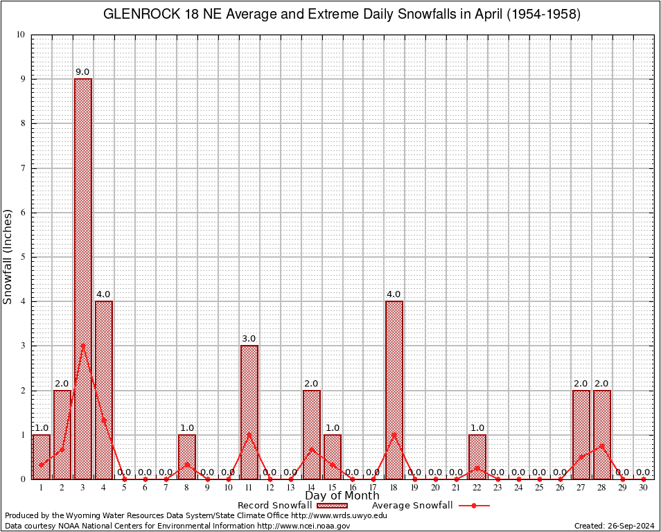 April Average and Extreme Daily Snowfall AMounts (1954-1958)