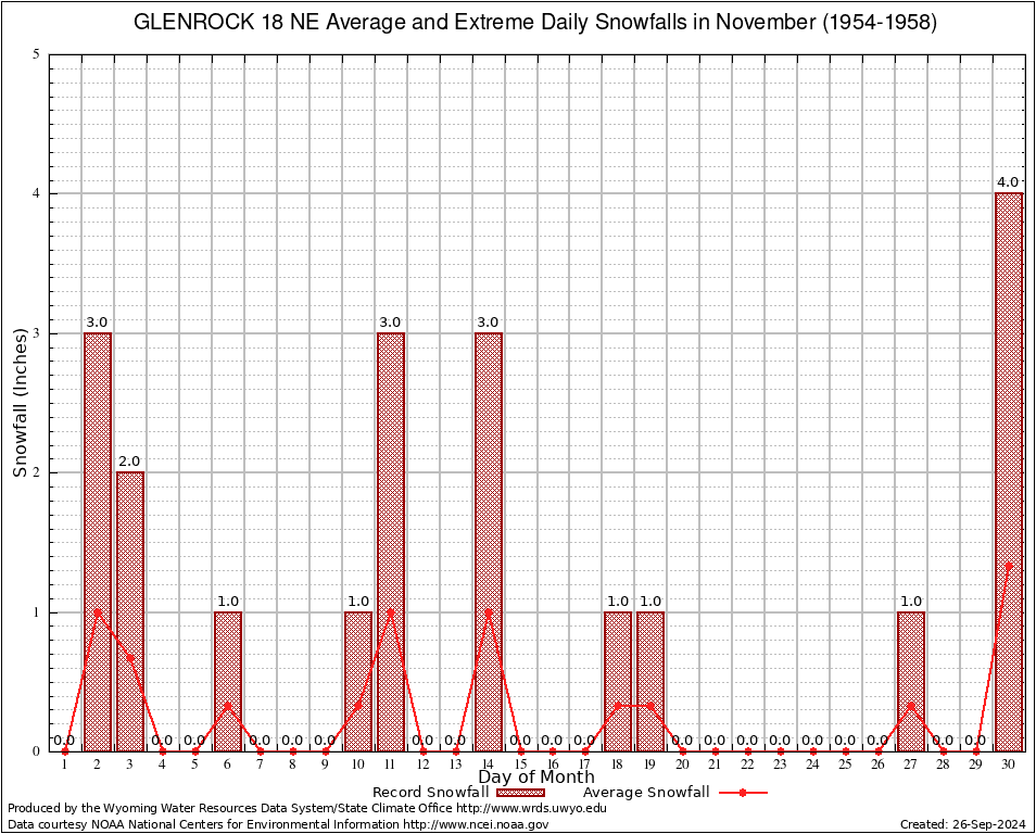 November Average and Extreme Daily Snowfall AMounts (1954-1958)