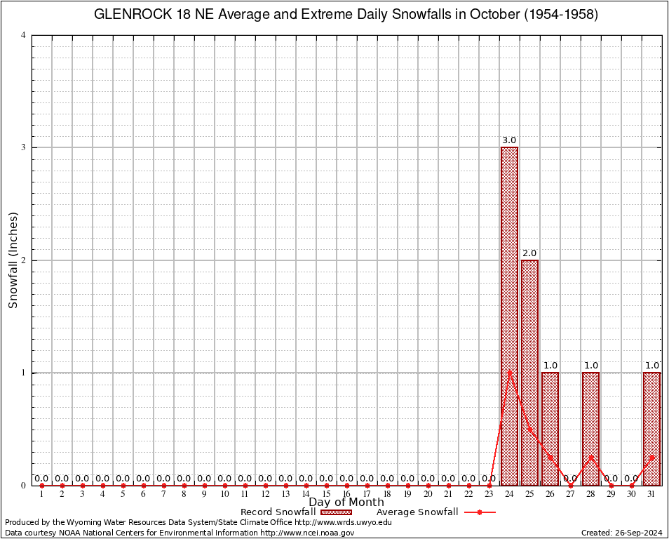 October Average and Extreme Daily Snowfall AMounts (1954-1958)