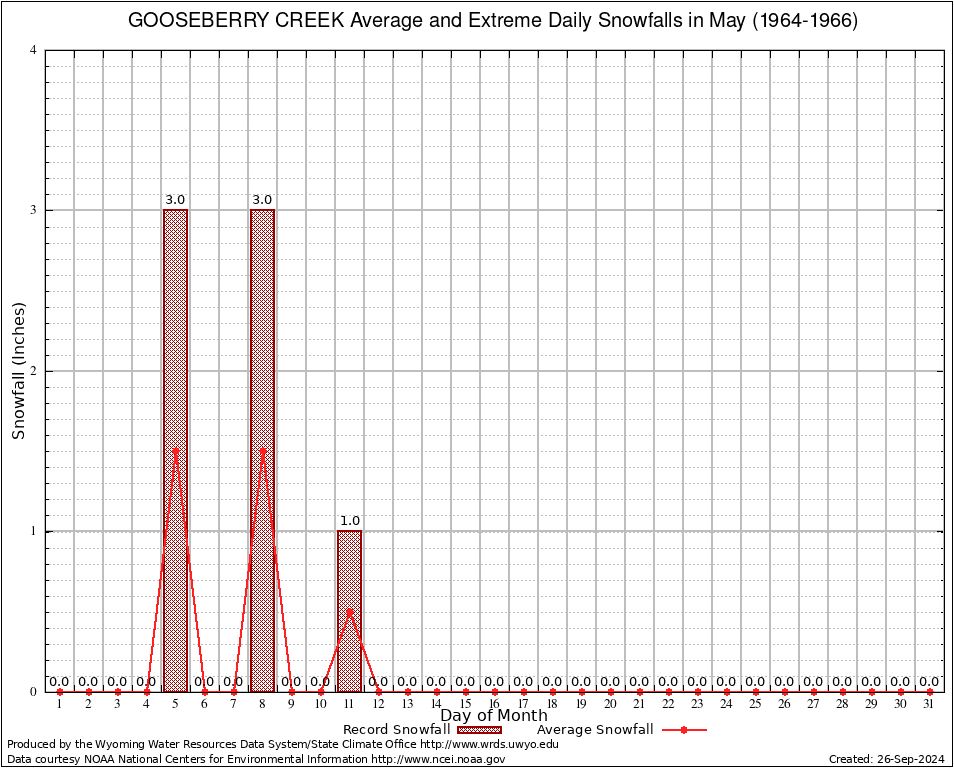 May Average and Extreme Daily Snowfall AMounts (1964-1966)