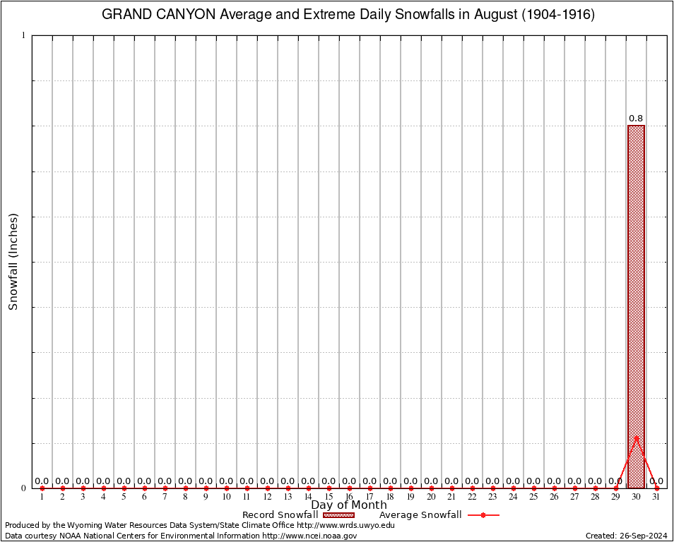 August Average and Extreme Daily Snowfall AMounts (1904-1916)