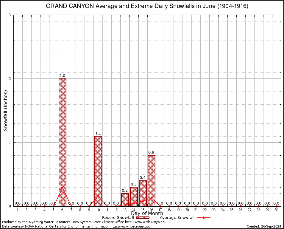 June Average and Extreme Daily Snowfall AMounts (1904-1916)