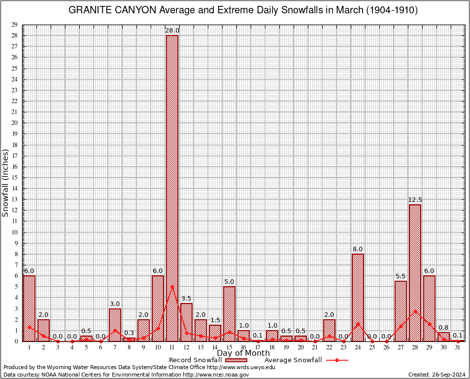 March Average and Extreme Daily Snowfall AMounts (1904-1910)