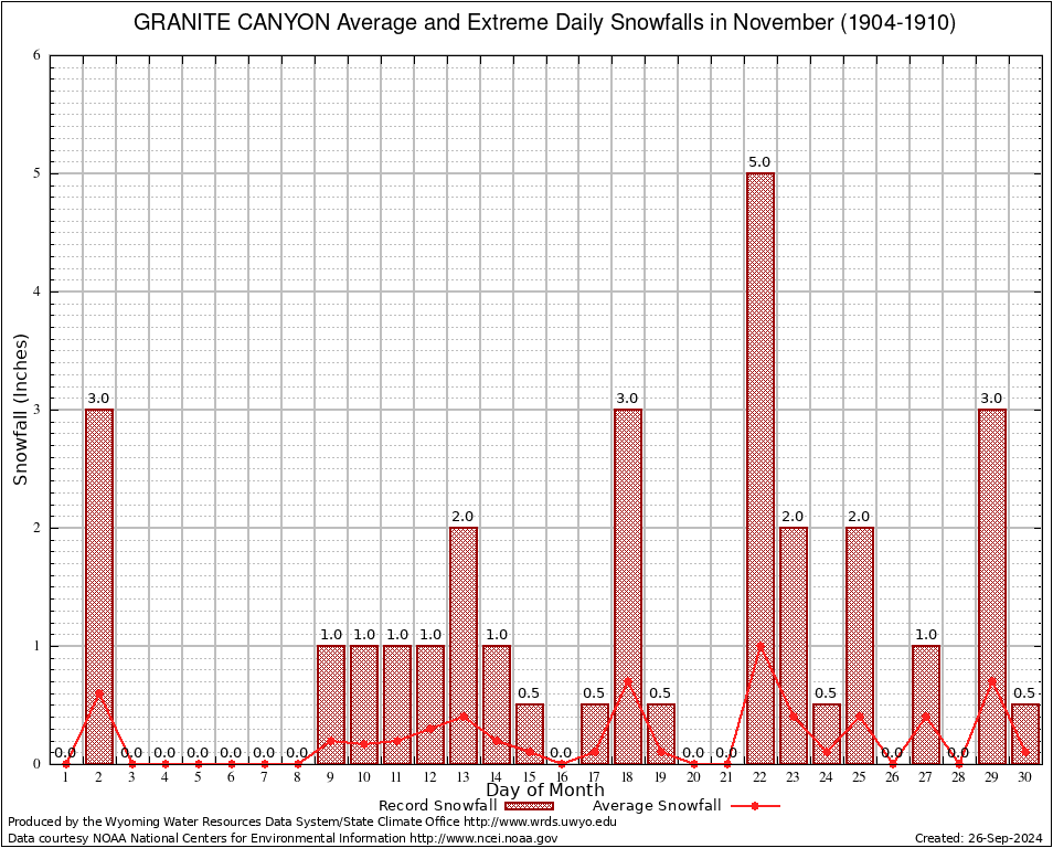 November Average and Extreme Daily Snowfall AMounts (1904-1910)