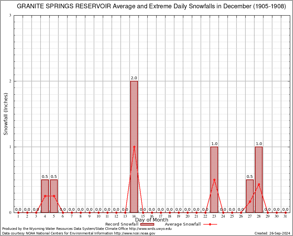 December Average and Extreme Daily Snowfall AMounts (1905-1908)