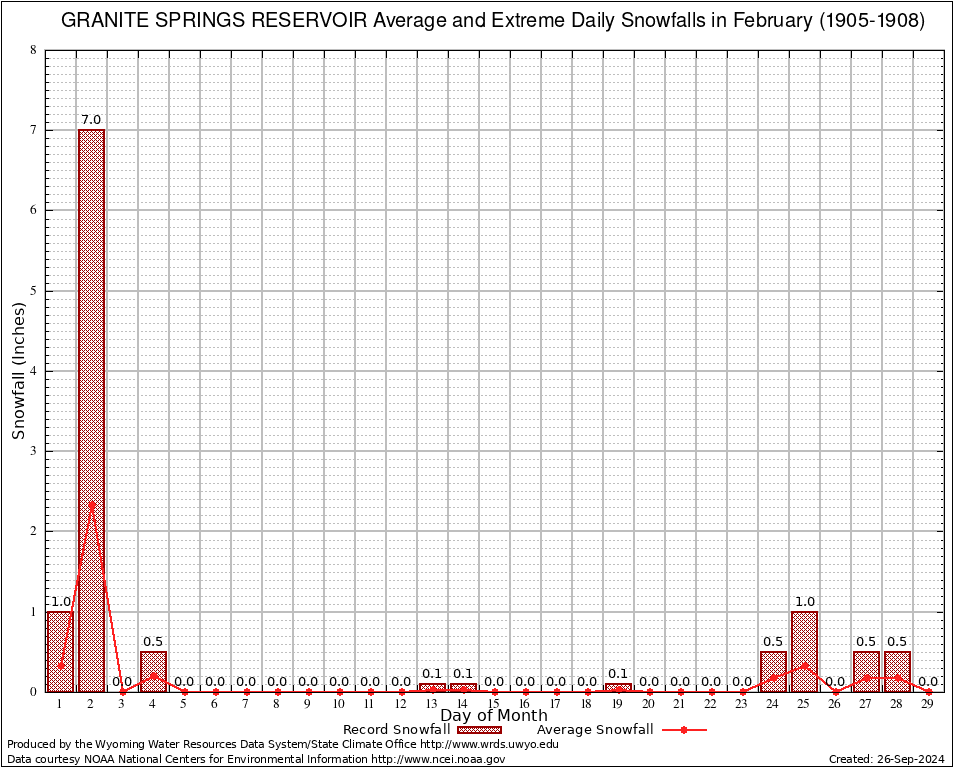 February Average and Extreme Daily Snowfall AMounts (1905-1908)
