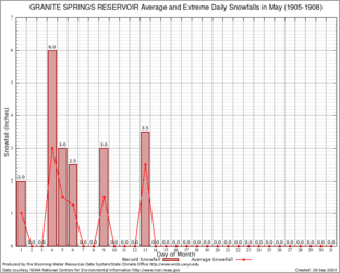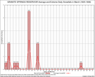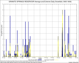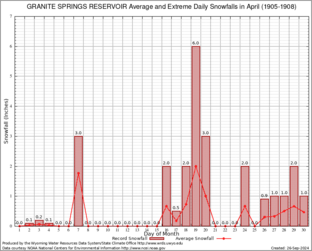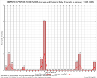 GRANITE SPRINGS RESERVOIR (484022) Record Extreme and Average Daily Snowfall (1905-1908) See Here for Other Stations