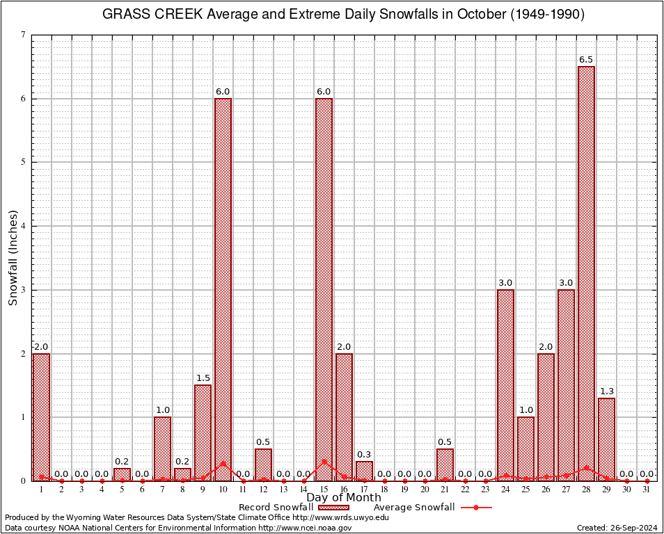October Average and Extreme Daily Snowfall AMounts (1949-1990)