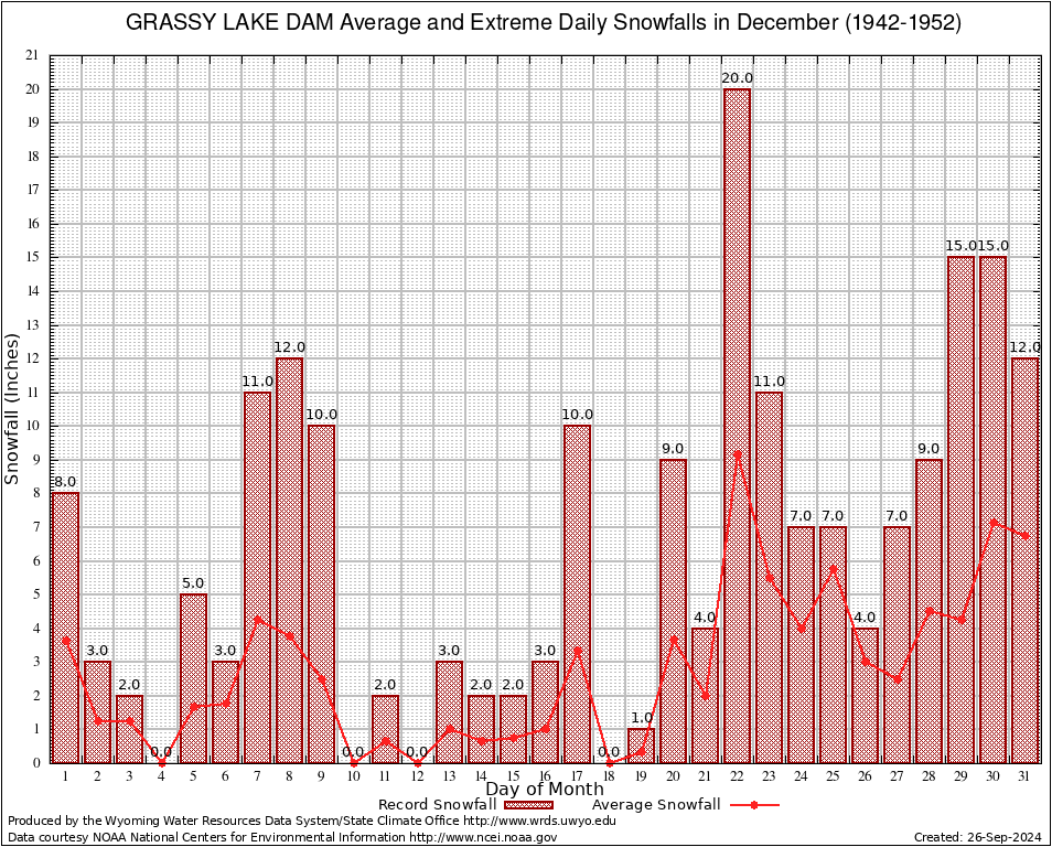 December Average and Extreme Daily Snowfall AMounts (1942-1952)