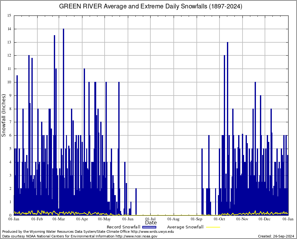Annual Average and Extreme Daily Snowfall AMounts (1897-2024)